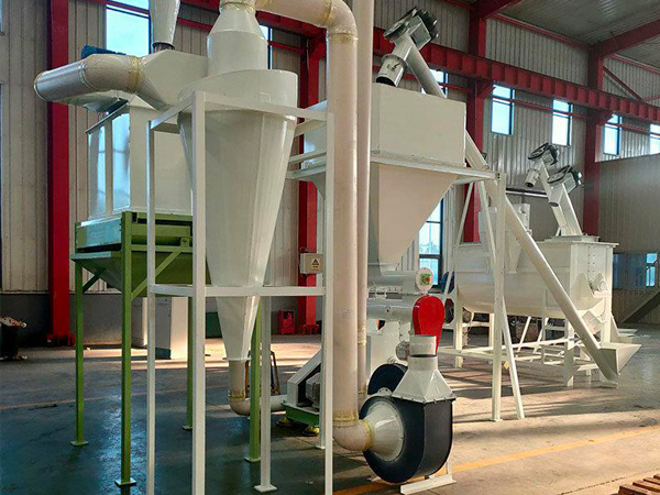 时产0.5-1吨成套饲料设备,常见搭配设备包含:粉碎设备、上料设备、制粒设备及冷却包装设备等;可根据客户不同产量、不同养殖牲畜、不同要求量身定制,完全满足客户的需